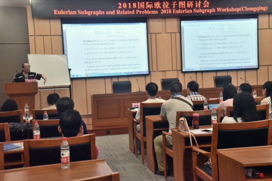 由数学与统计学院承办的“2018国际欧拉子图研讨会” (2018 Eulerian Subgraph Workshop)于6月15-17日在beat官网新图书馆会议室隆重召开。来自美国西弗吉尼亚大学、美国Butler大学、北京理工大学、北京交通大学、福州大学、新疆大学、北京化工大学等国内外10多所大学60多名欧拉图课题研究学者参加了此次研讨会。