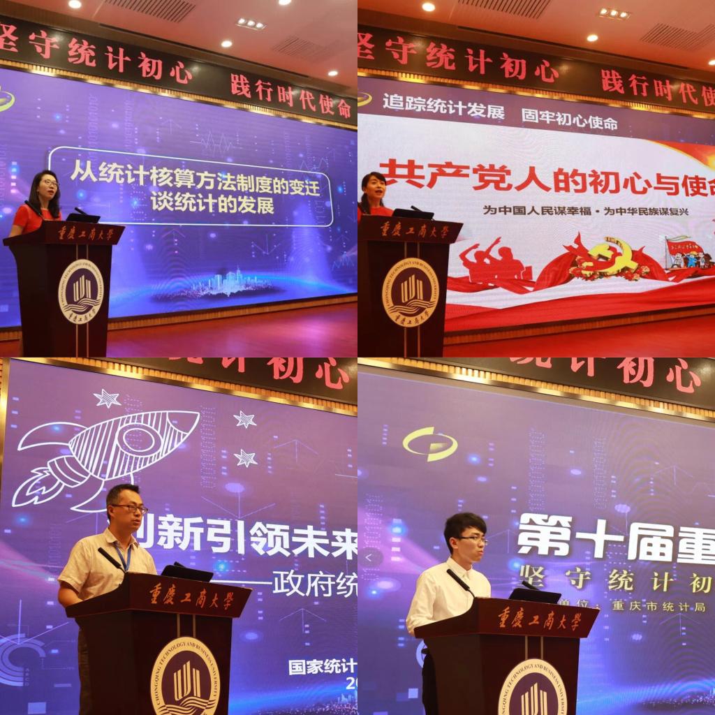 在活动现场,重庆市统计局国民经济核算处、统计设计管理处专家分别回顾了新中国成立70年来特别是改革开放以来重庆统计事业的发展历程。国家统计局重庆调查总队青年代表和重庆工商大学员工代表分别围绕“展望统计发展未来”、“我心中的统计”等主题作专题演讲。