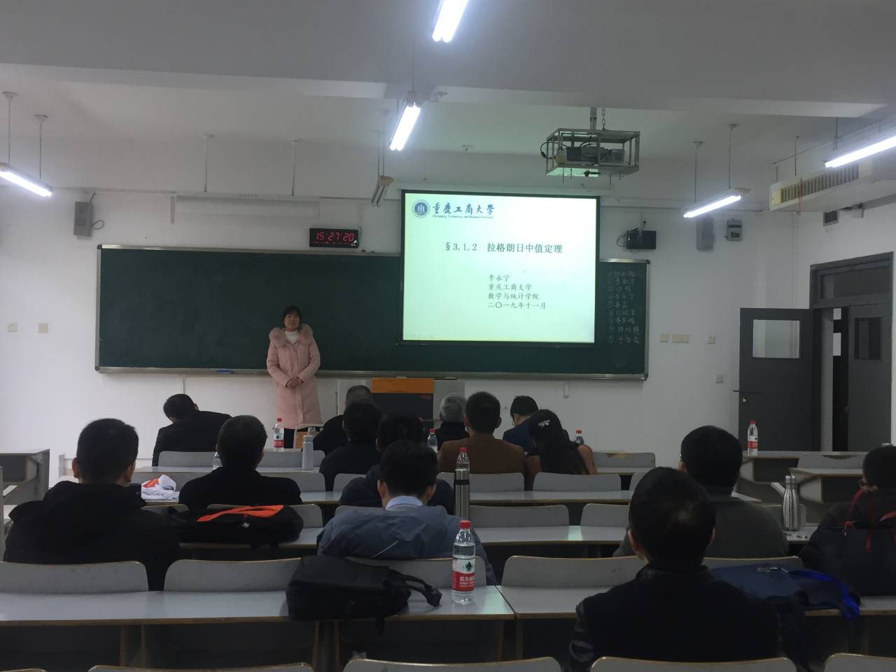 11月29日下午,数统学院在博智楼70310成功举行了2019首届“新进教师讲课比赛”。公司党总支喻永红书记、经理陈义安、教学经理龙宪军出席了大赛,学院2019年引进的9名新教师参加了比赛,学院同时还邀请了本科教学督导、系主任代表、新进教师指导老师等担任此次大赛评委。另外,学院部分青年教师和员工观摩了此次比赛。