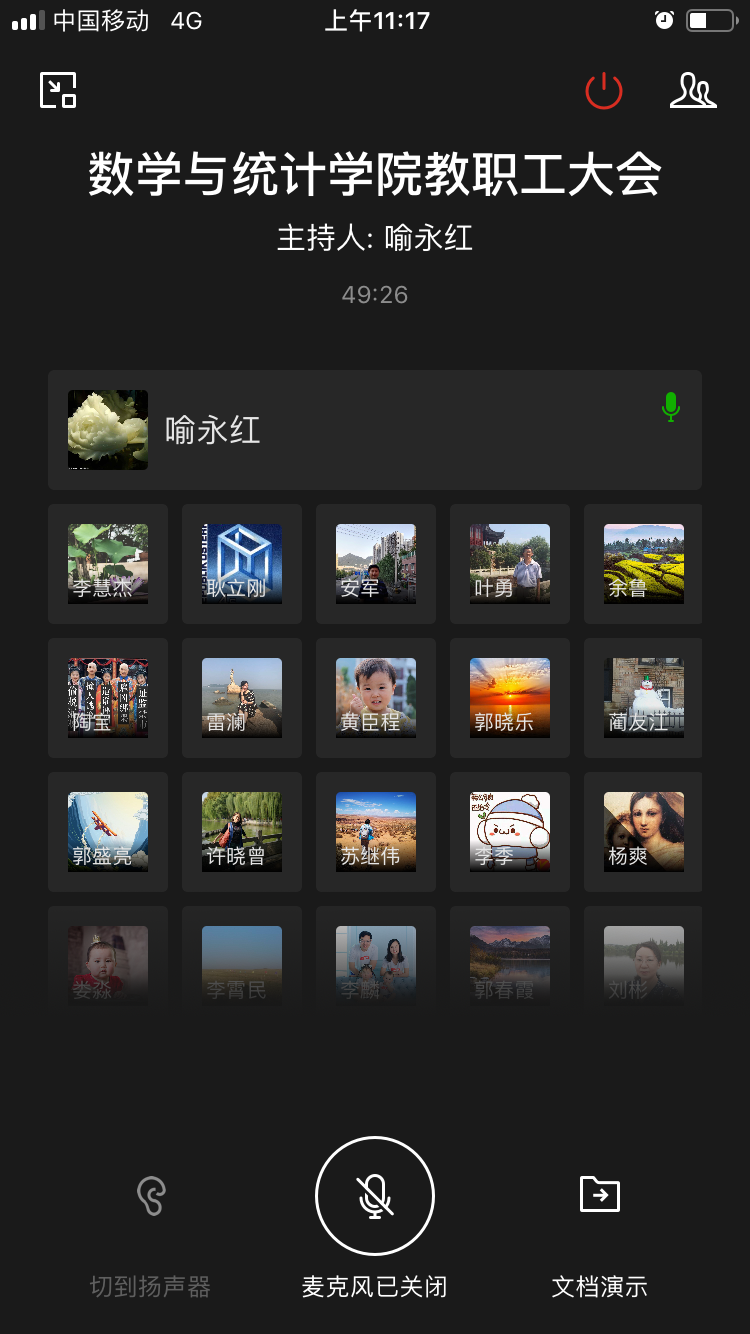 为做好疫情防控工作,部署新学期开学准备工作,数统学院积极响应学校“停课不停教、停课不停学、停课不停工”号召,于 2月26日上午召开全体教职工在线工作会议,对学院新学期开学以后的疫情防控、教学工作、团队建设、科学研究、员工管理、师德师风及意识形态工作等进行了细致梳理与布置,会议由喻永红书记主持,学院全体教职工在线参加了会议。