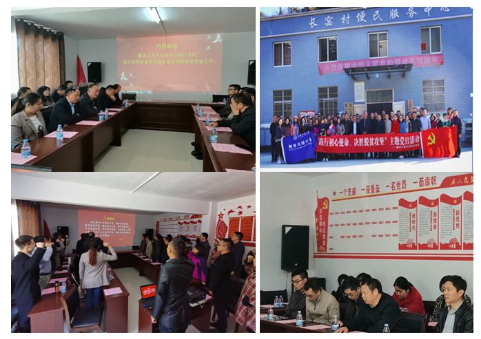 在保家镇贫困村——长窑村便民服务中心,这些来自高校的教职工们与当地干部群众举行了座谈,村党支部书记刘朝生向大家的到来表示热烈欢迎,并简要介绍了村情、支部党建工作和脱贫攻坚成效,经理陈义安教授代表学院表达了对长窑村精准扶贫及经济社会发展的关心与支持,beat官网派驻到长窑村的第一书记唐玺向与会人员讲授了题为“共荣的使命,厚重的民生”脱贫攻坚专题党课,联系长窑村的镇领导苏安讲话并带领所有参会的党员同志重温入党誓词,牢记作为共产党员的初心与使命。通过座谈交流,老师们对长窑村这些年在当地党委政府的领导及有力支持下,围绕基层党建、精准扶贫、乡村治理和产业发展等方面所作出的努力与取得的成果有了比较全面深入的了解,对农村基层工作也有了更为真切的体会。