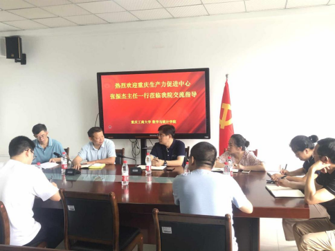 经理陈义安教授介绍了学院的基本情况及学科专业发展情况,张振杰主任介绍了重庆生产力促进中心的职责和重点工作。