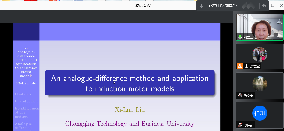 2021年12月1日,宝鸡文理学院刘喜兰教授为公司教师做了题为《类差分法在感应机电模型中的应用》的精彩报告,报告由beat平台经理陈义安教授主持,部分教师和研究生参加了本次报告会。