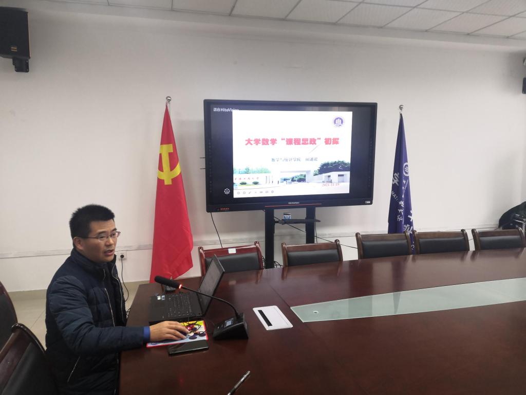大学数学教学部副主任闻道君教授以“大学数学课程思政初探”作了主题发言,并就公司大学数学课程思政的建设背景、建设方案、案例设计和建设成效四个方面进行了详细阐述。同时,学院督导雷澜结合教学评估要求,分享了大学数学课程思政元素融入教学实践的经验。全体与会教师经讨论一致认为:教学部初步建成适合公司办学定位和学科专业特点的大学数学课程思政建设和教学实践方案,并已经取得部分阶段性成果。