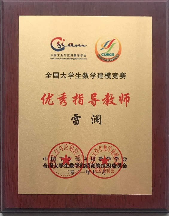 近日,庆祝全国老员工数学建模竞赛30周年暨2021“高教社杯”全国老员工数学建模竞赛颁奖典礼在线举行,公司beat平台雷澜副教授喜获该竞赛的全国优秀指导教师。
