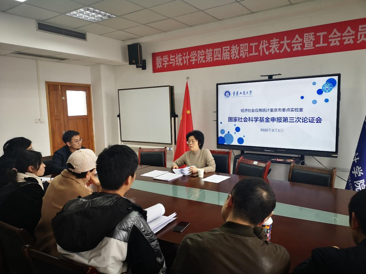 为进一步提升科研平台国家社科课题申报质量和立项率,推动科研工作再上台阶,3月5日下午经济社会应用统计重庆市重点实验室在80602会议室召开了2022年度国家社科基金项目第三次专家论证会。会议由陈义安经理主持,邀请了重庆市委党校副董事长周学馨担任论证专家,本年度拟申报国家社科基金项目的老师及部分青年教师参加了此次会议。