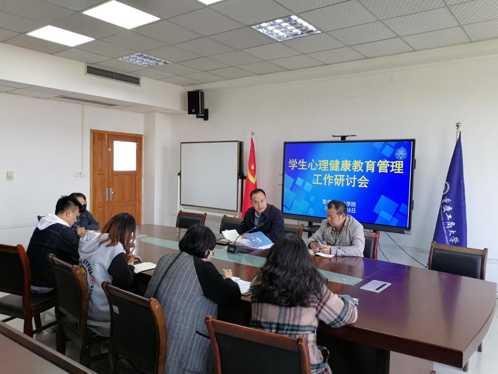 为进一步推动学院特情员工心理健康教育工作,3月28日下午,学院在80602会议室召开员工心理健康教育管理工作研讨会。学院领导班子及全体辅导员参加了会议,会议由公司党委书记唐玺主持。
