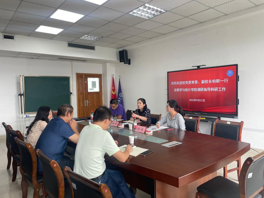 柏群针对学院科研工作现状及科研项目申报提出了几点要求和建议,她提到学院要处理好“质”与“量”的关系,既要在国家基金项目申报数量上实现突破,又要不断提高科研项目申报质量,注重数学、统计方法在各领域的应用及学科交叉融合等申报方向,组织专家团队进行科研项目申报指导,进一步提升国家基金项目中标率;要全面发力、重点突破,不断拓展思路、开阔视野、统筹组织,加强学科专业建设,提高人才引进质量,做好科研项目申报分类引导,鼓励青年教师积极申报教育部后期项目及国家社科基金后期项目,激发教师科研热情,提高教师科研能力;要严守纪律、勇担责任,积极关注教职工思想动态,做好意识形态工作,同时加强科研团队建设,进一步凝练学科方向,深耕科研,充分利用好学校现有人力资源,加强校际合作,学习好的经验和做法,调动多方力量积极参与科学研究;要在科研机制保障上下功夫,进一步优化科研管理体制,及时为教师提供科研信息咨询,了解教师科研诉求,鼓励教师结合国家政策和地方发展积极申报科研项目,为教师从事科学研究提供制度保障、营造良好环境。