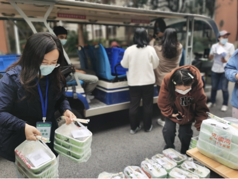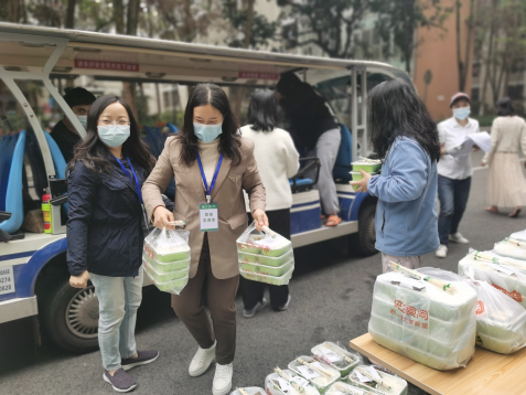 10月12日,学院根据工作需要组建学院疫情防控志愿服务队,综合办赵娟娟老师、罗作勤老师迅速到校协助配合学院疫情防控工作。潘书记、陈经理、叶经理分工合作,亲自牵头负责学院3个主体楼栋员工就餐工作,志愿者老师主动协助食堂工作人员承担分餐、送餐任务,让员工们在疫情之下感受到了来自学校和学院的温暖关怀。龙宪军副经理服从组织部安排在学校担任志愿者。至此,学院所有行政人员全部到达战“疫”一线。