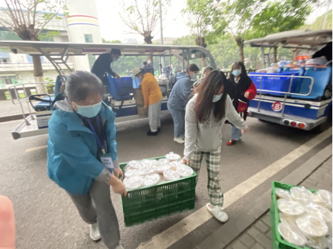 疫情发生后学校需要大量一线志愿者到封控楼栋给员工提供送餐服务,学院李鸿辉老师和张明平老师积极响应学校组织部号召,于10月11日下午及时到达学校参与志愿服务工作,连续三天蜗居办公室,按时为管控员工送餐,他们随叫随到,牺牲休息时间为员工提供后勤保障。