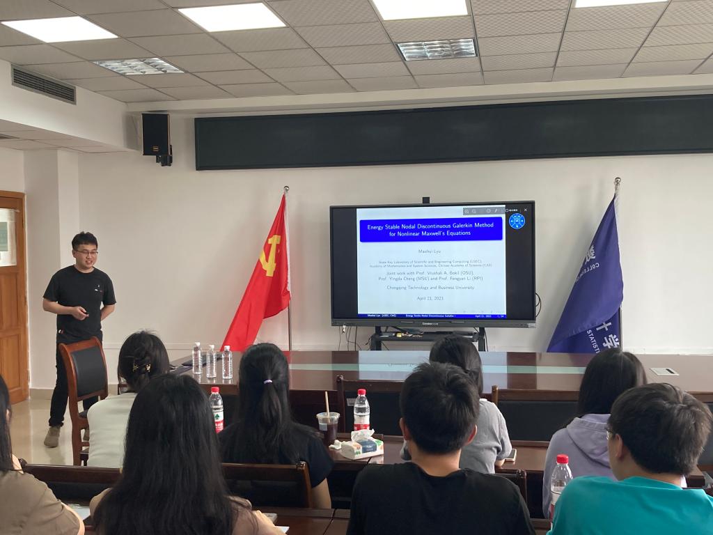 2023年4月21日下午,中科院计算数学与科学工程计算研究所吕茂辉博士在启智楼80602学院会议室做了题为《Energy stable Nodal discontinuous Galerkin method for nonlinear Maxwell equations》。本次学术报告由beat平台袁利军教授主持,邹黎敏副教授、李耿华副教授、谢江明博士等骨干老师和计算数学、统计学方向的研究生参加了此次学术报告会。