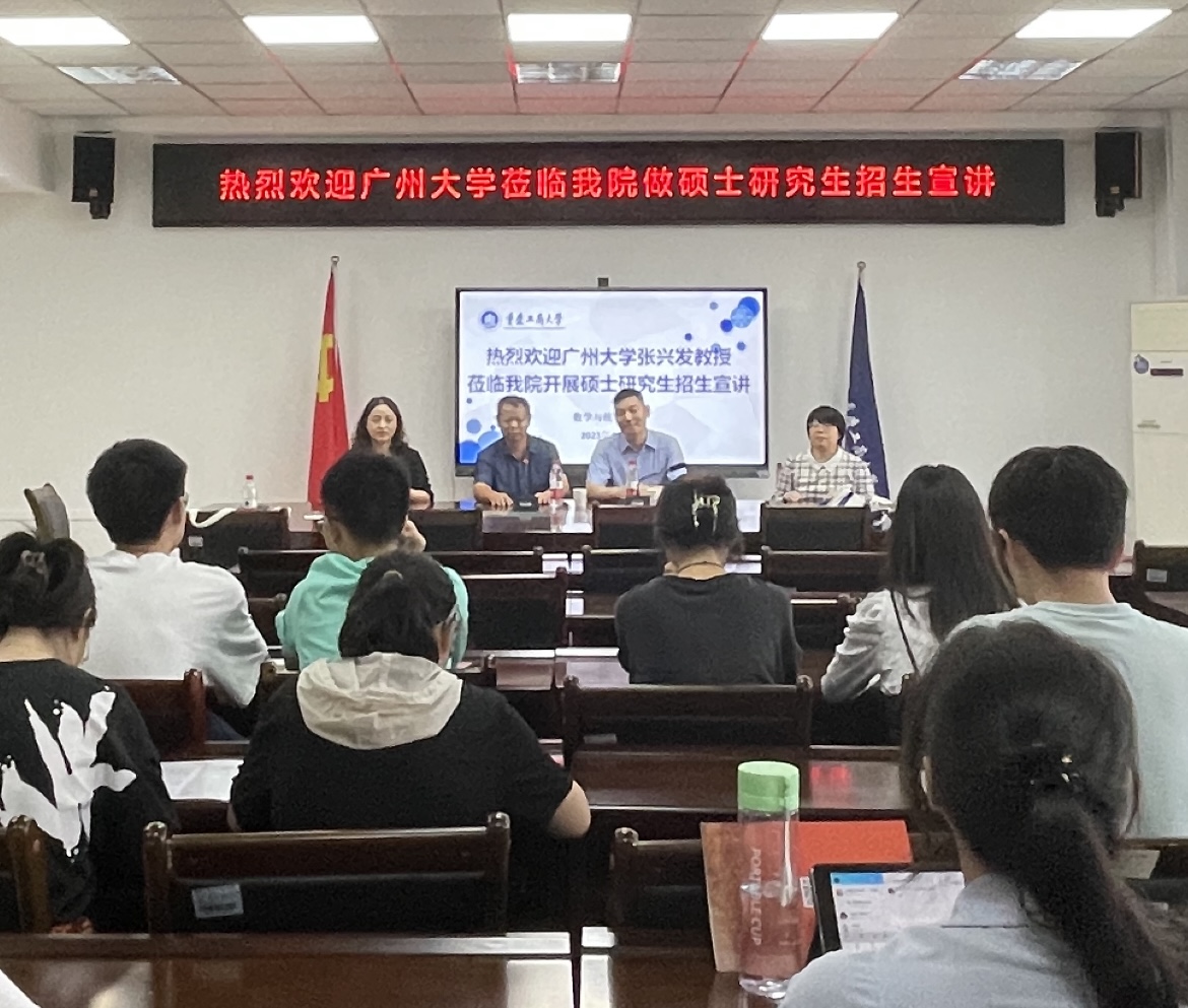 随后,张教授对广州大学经济与统计学院的发展历史、教师队伍、人才培养等进行了总体介绍,同时对硕士研究生招生政策及往年招生情况进行了细致解读,使同学们了解到研究生专业培养的基本情况,鼓励数统员工积极报考。