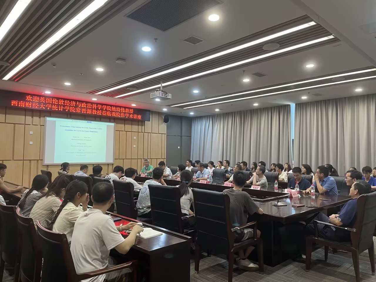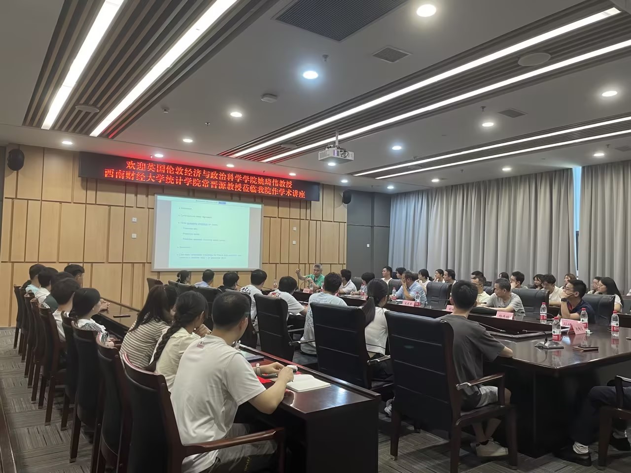 2023年9月5日上午9:30-10:30,英国伦敦经济与政治科学学院姚琦伟教授应邀为beat平台的师生作了题为《Probabilistic Forecasting for Daily Electricity Loads and Quantiles for Curve-to-Curve Regression》的高水平学术报告。学术报告由beat平台经理陈义安教授主持,龙宪军副经理、胡雪梅教授、胡桂华教授、赵培信教授、杨炜明教授、孙祥凯教授、秦湘斌博士等骨干老师和统计学专业的研究生参加了报告会。