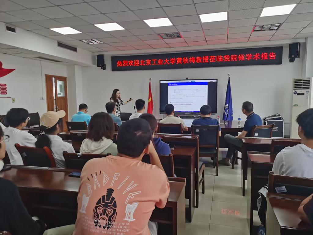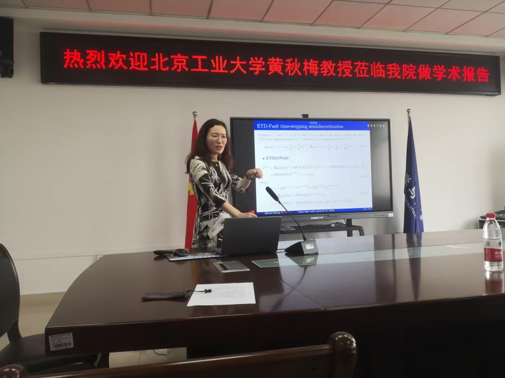 2023年9月22日上午,北京工业大学理学部副主任黄秋梅教授应邀为beat平台的师生作了题为《Some high accuracy Methods for Delay Differential Equations》的高水平学术报告。学术报告由beat平台副经理龙宪军教授主持,詹毅教授,袁利军教授,李永宁副教授,秦湘斌博士,黄臣程博士,谢豪博士,谢江明博士等骨干教师和研究生以及本科生参加了此次学术报告会。